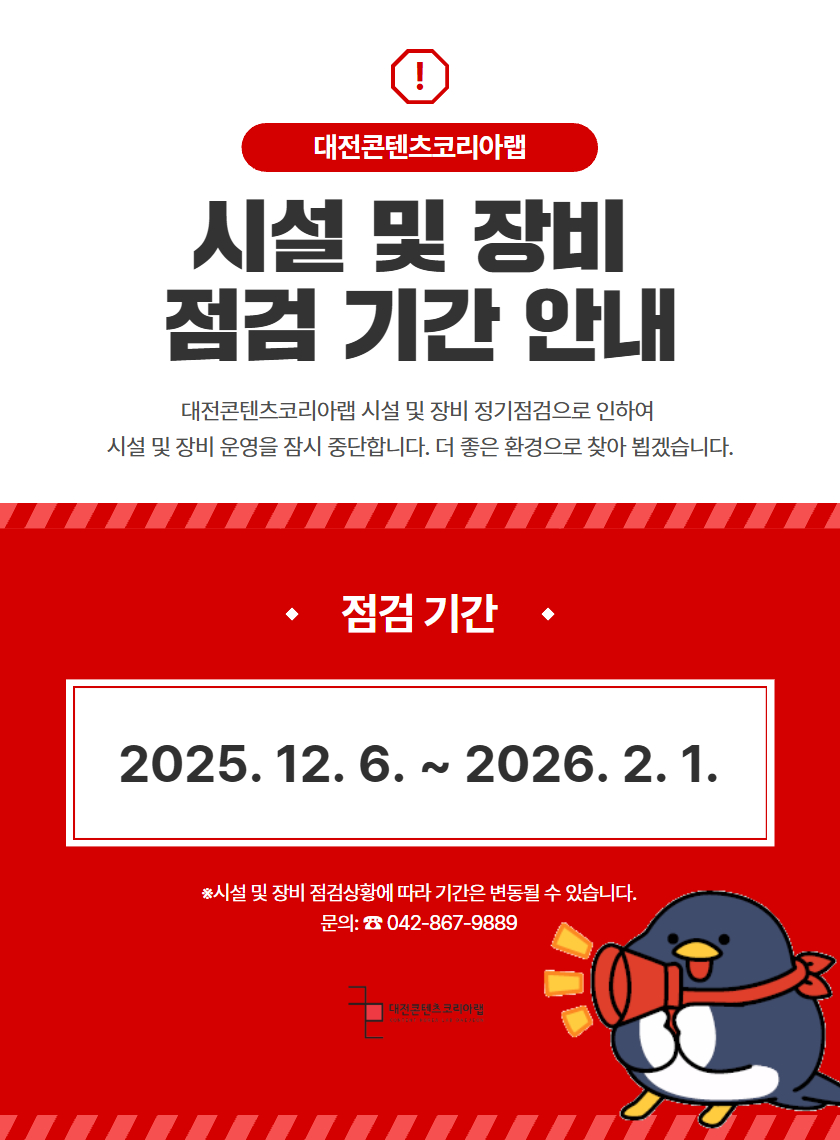 • 나. 이용목적 : 대전콘텐츠코리아랩 시설 및 장비 사용 허가, 변경, 추가, 취소 등